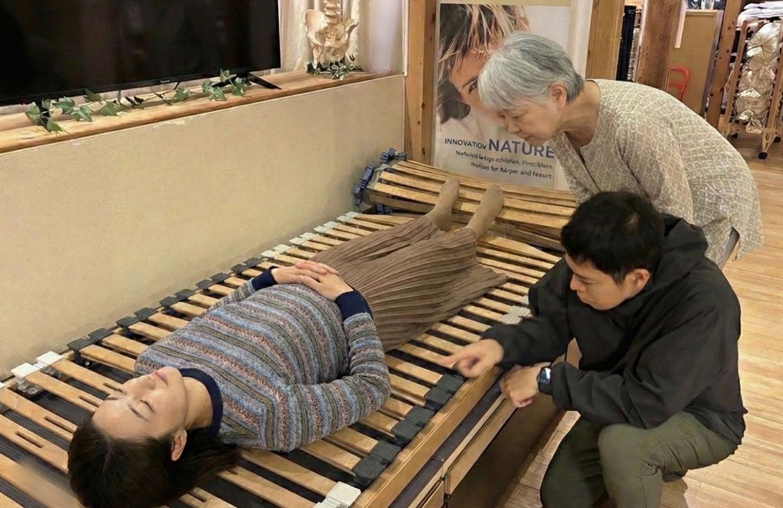 SNSを見て来店し、家族4人分のベッドを購入しました。起床時の体の痛みがなくなり、夫の肩こりも軽減しました。